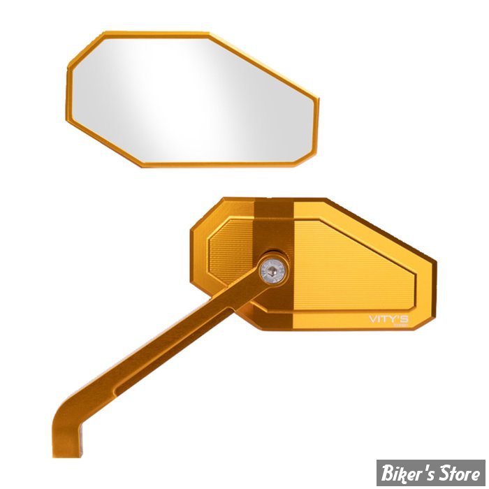 Finition anodisée or. Usiné CNC à partir d'une barre d'aluminium. Vous recherchez un rétroviseur design ? Il doit allier style et performance, être d'une qualité exceptionnelle et offrir des fonctionnalités optimales. Contrairement à certains rétroviseurs design trop petits, celui-ci est tout simplement magnifique. Que vous admiriez son design ou que vous utilisiez le rétroviseur pour la visibilité arrière, l'excellence est notre priorité : ce rétroviseur répond à tous les critères.