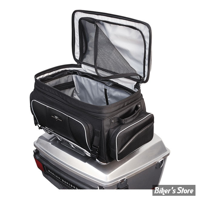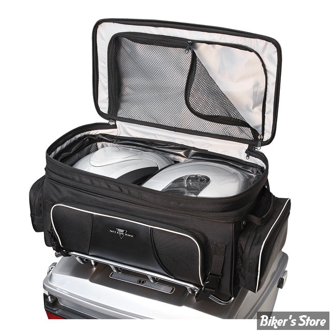 Industry leading UltraMax® fabric with maximum UV protection. Mounts to most tour trunks luggage racks including: Harley Ultra, Goldwing, Indian Roadmaster, etc. Can hold 2 full face helmets even when non-expanded. Additional 3" expansion section for extra storage. 3 generous outer pockets for quick access items. Mesh pocket under lid of main compartment. Reflective piping for enhanced visibility. Rugged quick release straps securely mount to rack. Fully lined interior with rigid construction. 3 Carry handles for off-bike transport. Waterproof rain cover included. Main compartment: 63 liter. 22"L x 12"W x 14.5"H. Expanded: 73.5 liter. 22" (55.9cm) L x 12" (30.5cm) W x 17" (43.2cm) H.