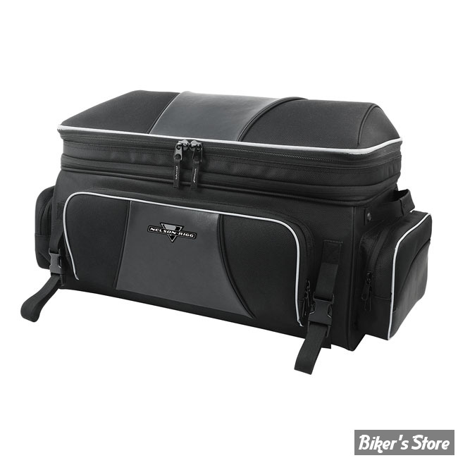 Tissu UltraMax® à la pointe de l'industrie avec une protection UV maximale. S'adapte à la plupart des porte-bagages des coffres de tourisme, y compris : Harley Ultra, Goldwing, Indian Roadmaster, etc. Peut contenir 2 casques complets même lorsqu'ils ne sont pas étens. Section d'extension supplémentaire de 3" pour un rangement supplémentaire. 3 poches extérieures généreuses pour des articles à accès rapide. Poche en filet sous le couvercle du compartiment principal. Passepoil réfléchissant pour une visibilité accrue. Les sangles robustes à dégagement rapide se montent solidement sur le rack. Intérieur entièrement doublé avec construction rigide. 3 poignées de transport pour le transport hors vélo. Housse de pluie imperméable incluse. Compartiment principal : 63 litres. 22"L x 12"L x 14,5"H. Élargi : 73,5 litres. 22" (55,9 cm) L x 12" (30,5 cm) L x 17" (43,2 cm) H.
