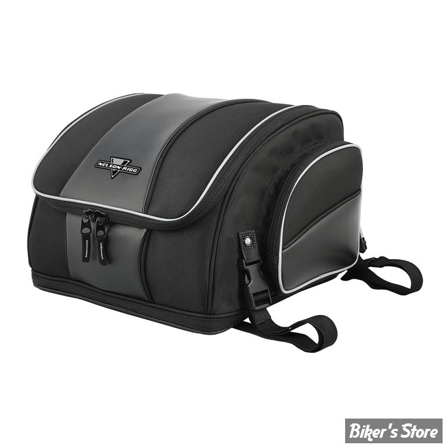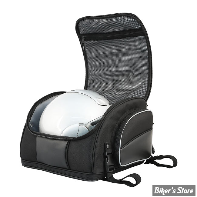UltraMax® fabric for maximum UV protection. Mounts to luggage/tour trunk racks, sissy bar or seat using quick release and self-fastening straps. Fully expandable holds one full face helmet. 2 outer pockets for quick access items and lockable zippers. Rigid construction an solid base panel prevents sagging. Reflective piping enhances visibility; waterproof rain cover included. Main compartment: 31 liter. 14" (35.6cm) L x 13.5" (34.3cm) W x 10" (25.4cm) H. Main compartment expanded: 40 liter. 14" (35.6cm) L x 13.5" (34.3cm) W x 13" (33cm) H.