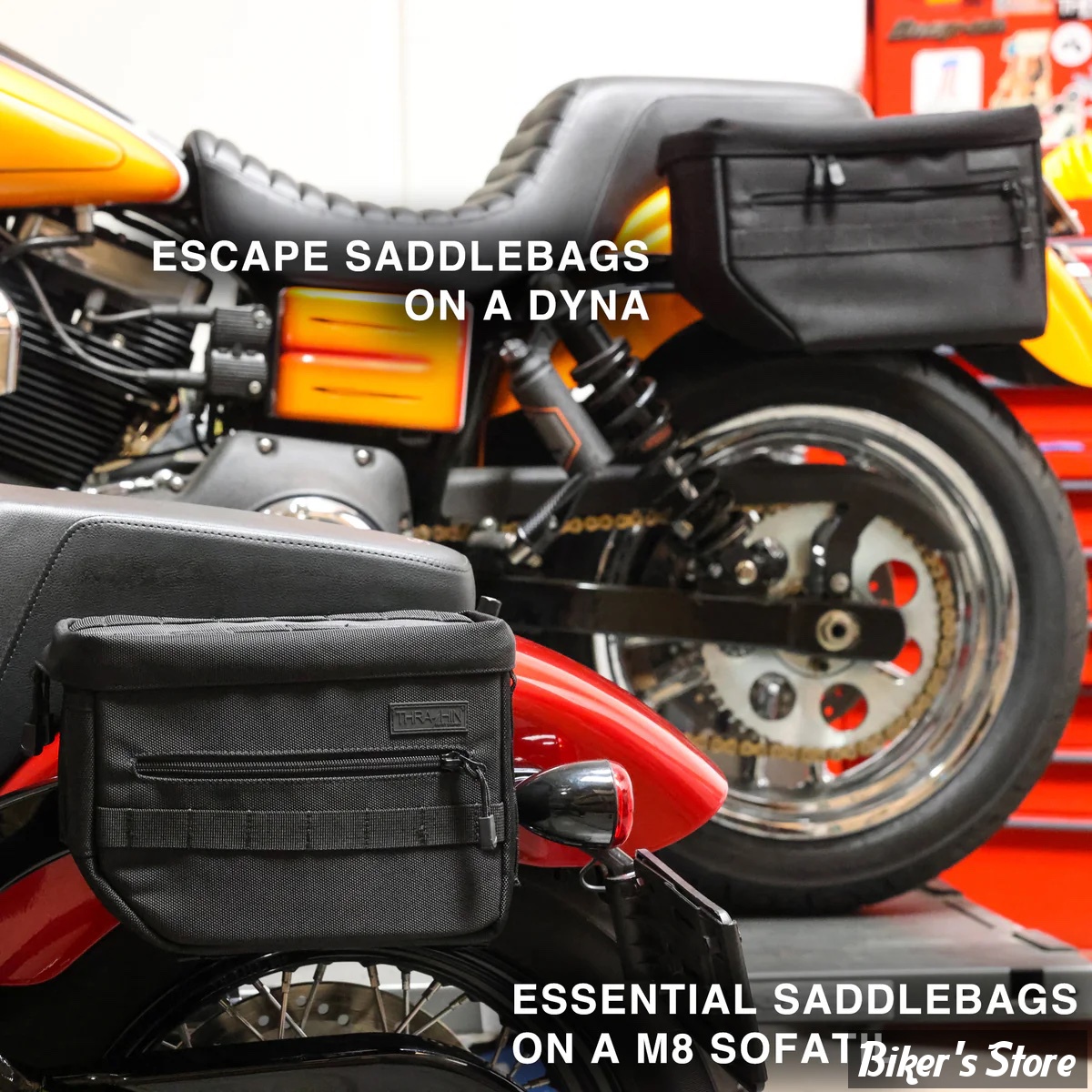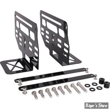 Pour sacoches Trashin Escape ou Essential - Pour Softail M8 à partir de 2008 (Fonctionne avec les clignotants d'origine) y compris FXBB / FXFB / FXBBS / FXLR / FXLRS / FLSL / FLDE / FXST / FXBR / FXBRS / FLFB / FLFBS, Egalement pour Dyna de 1999 à 2017(déplacement des clignotants nécessaire). Le Kit