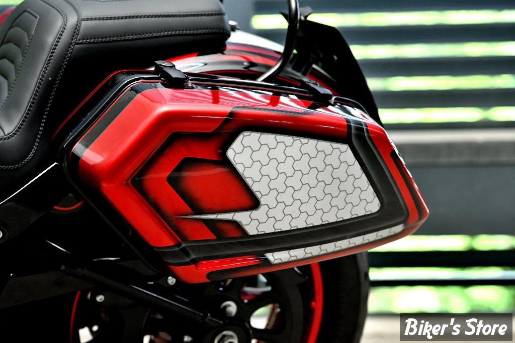 Transformez votre Dyna bien-aimée en une bête Clubstyle et transportez tout ce dont vous avez besoin sans sacrifier le confort de conduite. Le kit comprend des sacoches, des serrures, l'étanchéité, des limiteurs pour les couvercles de sacoches et des supports de montage. Tout ce que vous avez à faire est de tester l'ajustement et de les faire peindre. En de fibre de verre de haute qualité avec une finition en gel coat blanc, prêt pour la préparation de peinture.
