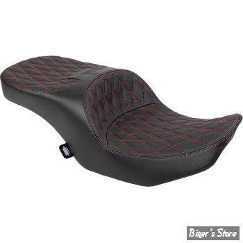- SELLE DRAG SPECIALTIES - FREEDOM TOURING SEAT - TOURING 2023UP - FINITION : NOIR / DOUBLE DIAMOND - COUTURES : ROUGE - 4711D