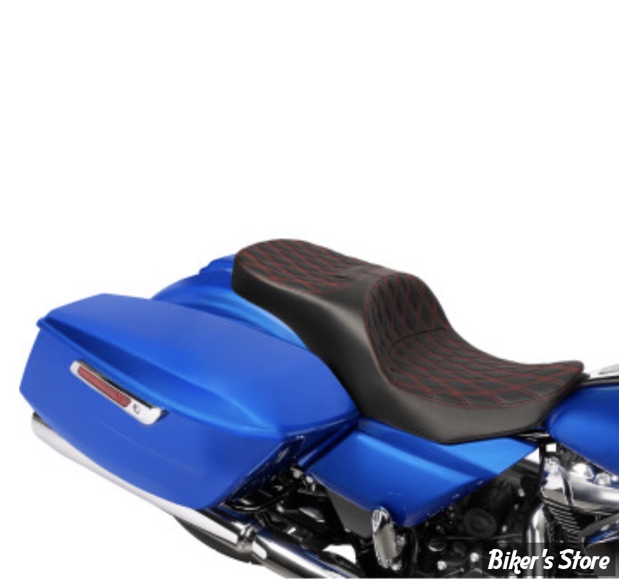 Pièces pour Custom > Harley-Davidson > SELLES et Poufs > Duo Touring FLTRX/SE 2023> > - SELLE DRAG SPECIALTIES - FREEDOM TOURING SEAT - TOURING 2023UP - FINITION : NOIR / DOUBLE DIAMOND - COUTURES : ROUGE - 4711D