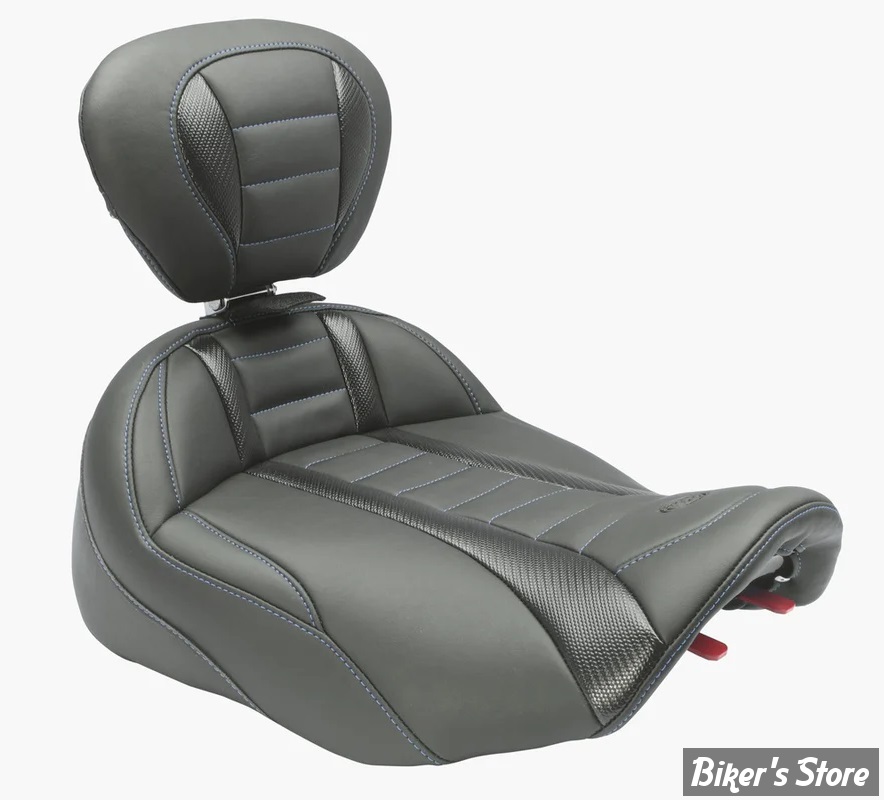 - SELLE MUSTANG - FREEDOM TOURING SEAT - TOURING 2023UP - Deluxe Touring Solo Seat INSERTS CARBONE - NOIR / COUTURES : BLEU CIEL - 89401SB