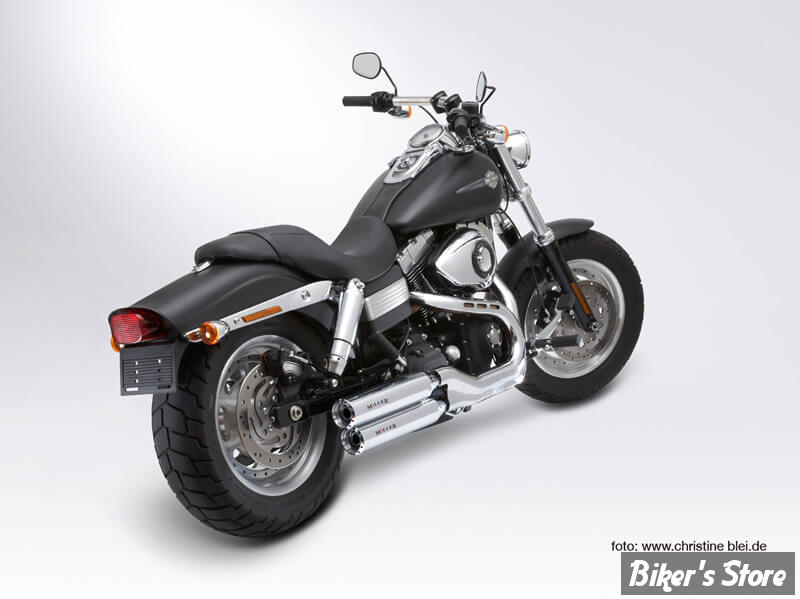 Le système d'échappement Miller Utah II : un système à enfiler pour la Harley Davidson Wide Glide pour un son distinctif de la Harley V2.