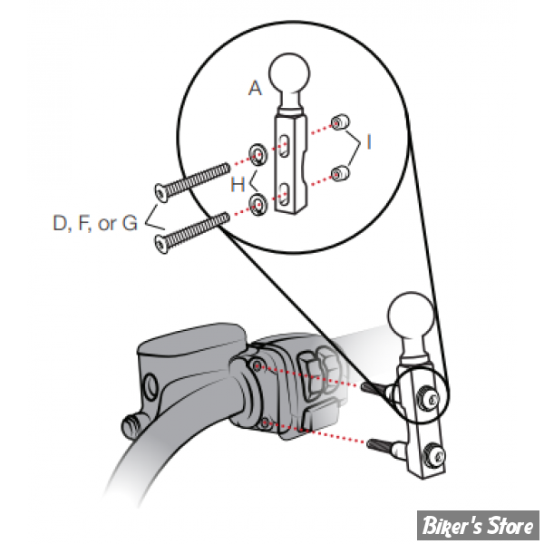 Pour commande de guidon Harley (à partir de 1996) et autres avec entres axes de visserie de demi-collier de commandes d'embrayage ou de frein de 2.40cm à 4.00cm, ou guidon de 12,70mm à 31,70mm par un système de serrage en "U".Le Kit