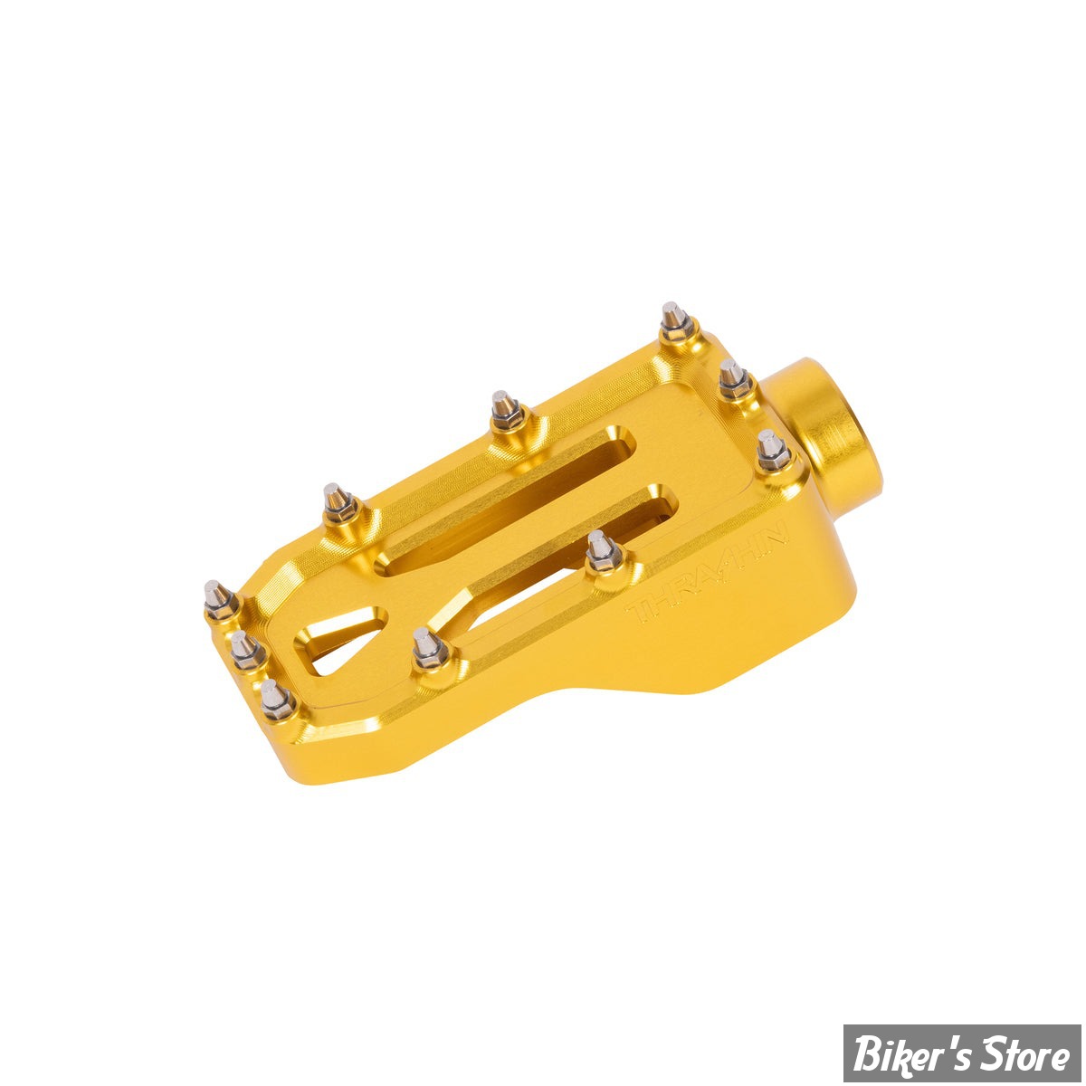 Complétez votre équipement avec la pédale de frein THRASHIN® Aggressor et évitez tout glissement du pied. Son profil fin offre une surface d'appui optimale et elle est dotée de 10 crampons coniques en acier inoxydable. Cette pédale est le complément idéal de notre bras de frein réglable Bagger.