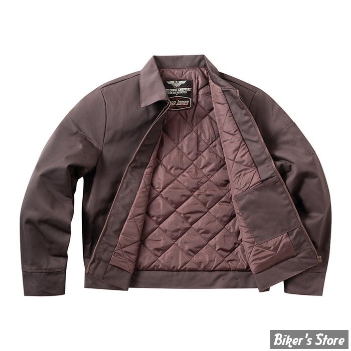 Inspirée d'un classique américain, cette veste de travail noire doublée est confectionnée avec un extérieur en polyester/coton et une doublure intérieure en taffetas de nylon. Le logo en forme de croix est brodé sur la poitrine gauche, et l'inscription « WCC Motorcycle Co. » est également brodée au dos. Une étiquette tissée avec le logo OG est cousue en bas du devant. Cette veste à la coupe ample classique est idéale pour les journées fraîches et se porte facilement toute la journée. Confortable au niveau du buste, elle est dotée d'une fermeture éclair en laiton résistante, de poches avant, d'une poche intérieure, d'une petite -poche pour stylo sur la manche gauche, de pattes de serrage à la taille avec boutons Jesse James Workwear, de poignets à un bouton et offre une chaleur légère.