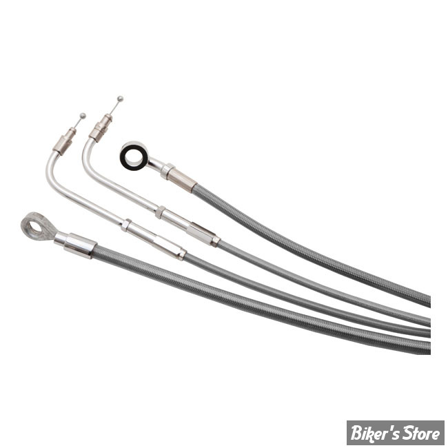 + 18". Pour Touring FLHR/I/CI/S/SI et FLTR sans régulateur de vitesses de 2007. Le kit comprends les cables (embrayage, tirage et retour), 1 rallonge de faisceau electrique et 1 durite de frein. Le Kit.