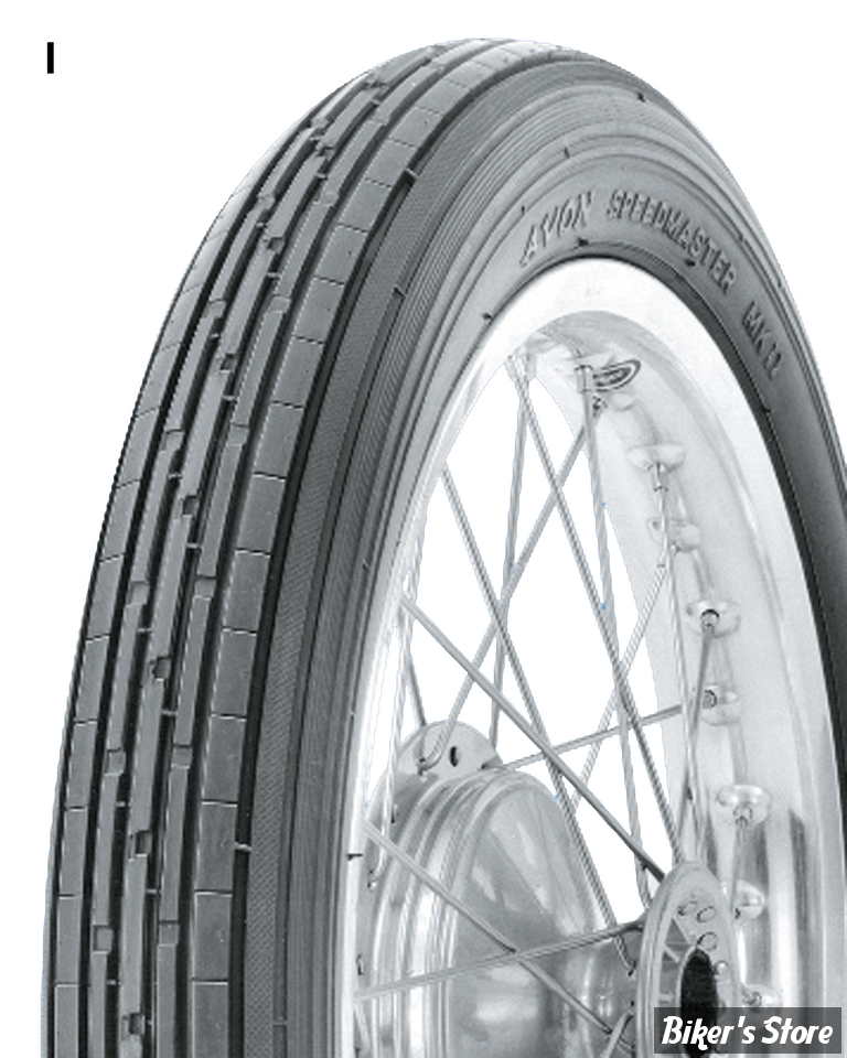 Un pneu classique pour motos classiques. Le Speedmaster Avon procure une bonne stabilité avec une adhérence accrue même sous la pluie. Les flancs avec les sculptures "à l'ancienne" donneront le look ancien "Nostalgique" sans sacrifier le confort. Il est conseillé de les monter avant/arrière. Ces pneus ont un indice de vitesse S et peuvent être utilisés jusqu'à 180 Km/h (118 MPH) et doivent avoir une chambre.