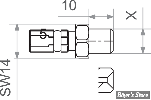 - connecteur en acier inoxydable poli, évasement inversé mâle, sans broche, filetage extra long de 18 mm. À utiliser uniquement avec les durites de frein TRW Varioflex. Filetage extérieur.