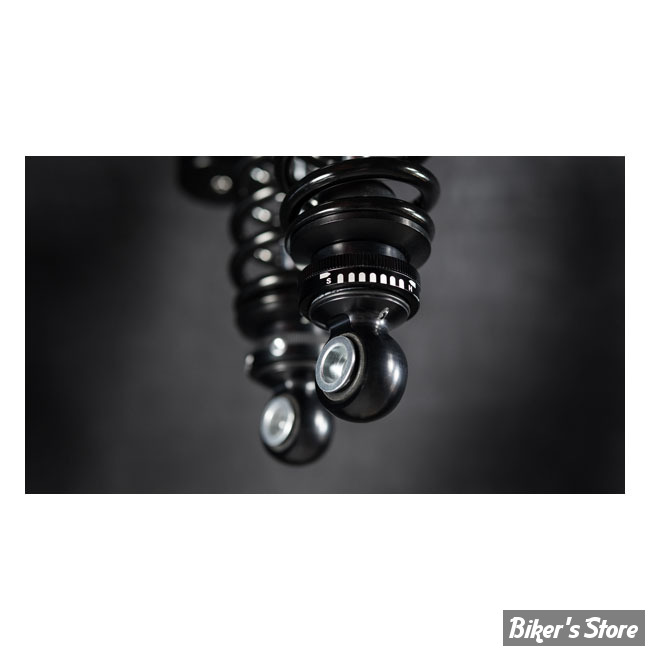 Précharge réglable manuelle. Amortisseur Piggyback. Avec précharge de ressort réglable, amortissement par compression réglable et amortissement de rebond réglable. - Corps d'amortisseur en acier allié haute résistance - Tige d'amortisseur en acier de 12 mm de diamètre - Chambre de compensation en aluminium séparée (arrière de cochon) - Sous pression au gaz (Nitrogène) - Têtes en alliage d'aluminium usinées CNC - Précharge du ressort (sans pas) - Amorti de rebond (5 ou 7 clics) - Amorti par compression (12 clics) - Entièrement utilisable - Comprend 2 amortisseurs-chocs, des instructions d'assemblage, un manuel et un outil de réglage de précharge du ressort.