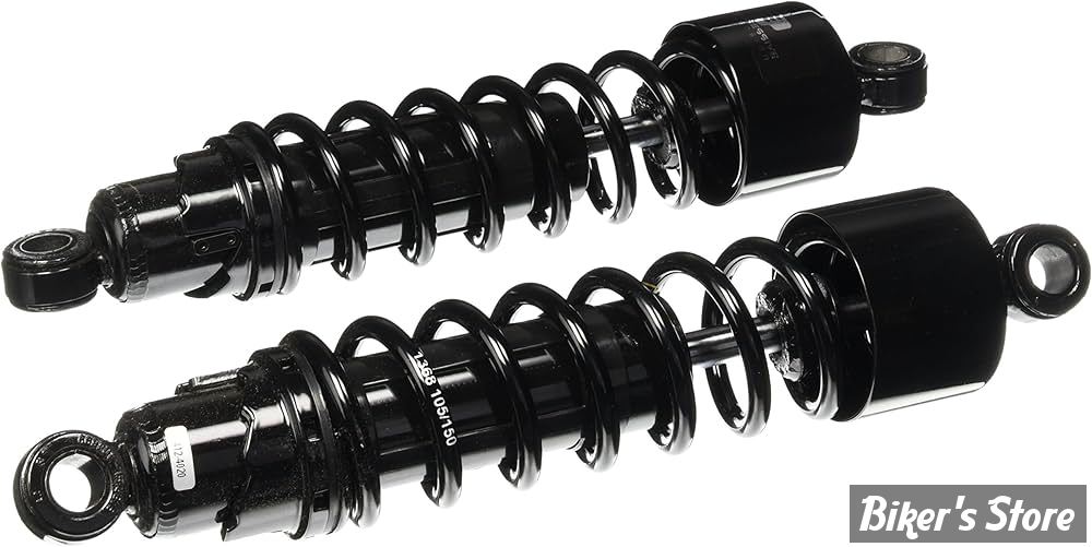 Vous pouvez choisir entre les amortisseurs à corps noir aux ressorts et caches chromés et ceux à corps noir aux ressorts noirs. Les autres qualités sont la construction à double parois, la pré-contrainte six niveaux, les tiges thermiquement traitées et chromées, les joints d’étanchéité durables et l’huile antifading. Les amortisseurs sont équipés de ressorts 75/130 et sont accompagnés de bagues supérieure et inférieure et d’une garantie d’un an pour les amortisseurs et à vie pour les ressorts. Les ressorts livrés conviendront à la majorité des pilotes. La tension des ressorts est réglable en cinq positions. Pour certains modèles nous proposons aussi des ressorts renforcés Heavy Duty. Vous avez la possibilité de commander des amortisseurs en longueur d'origine, mais libre à vous de choisir des amortisseurs plus courts ou plus longs pour le même groupe d’application. Veuillez cependant noter que des amortisseurs plus courts rabaisseront votre moto. Il faudra vérifier l’intervalle entre le pneu et le garde-boue après installation.