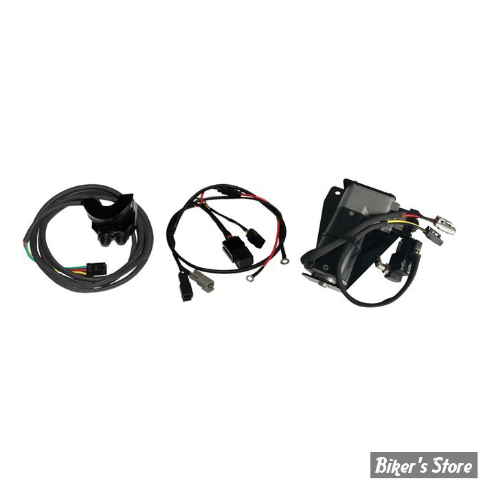 Le système comprend une commande noire fixée au guidon de même aspect que le composant OEM pour un ajustement facile à l’aide d'un bouton, « en route »