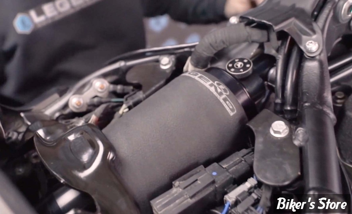 Le compresseur à air est inclus, pré-câblé et monté conformément au modèle spécifique (sous la moto, devant le bras oscillant)