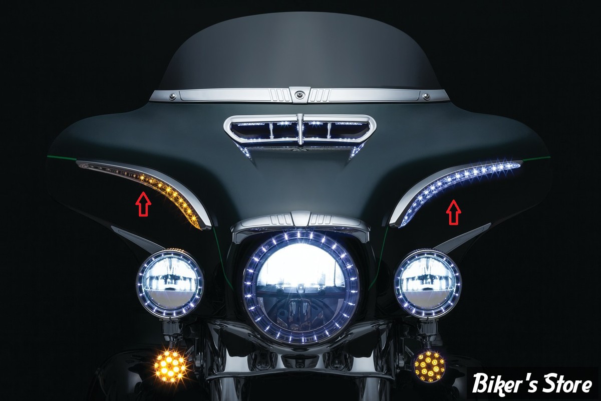 Baguettes enjoliveurs de carénage batwing avec fonction veilleuse et clignotant pour Touring et Trike avec batwing à partir de 2014. le kit