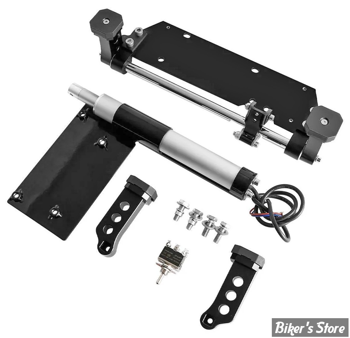 Ces béquilles centrales électriques sont pour Touring 2009 au présent. Elles se fixent en quelques minutes et utilisent un vérin électrique. Un système de suspension pneumatique est nécessaire pour abaisser la moto pour permettre de reposer au sol. Les deux pieds permettent à la moto de rester droite à l'arrêt. Les kits sont en époxy noir et prêts à installer.