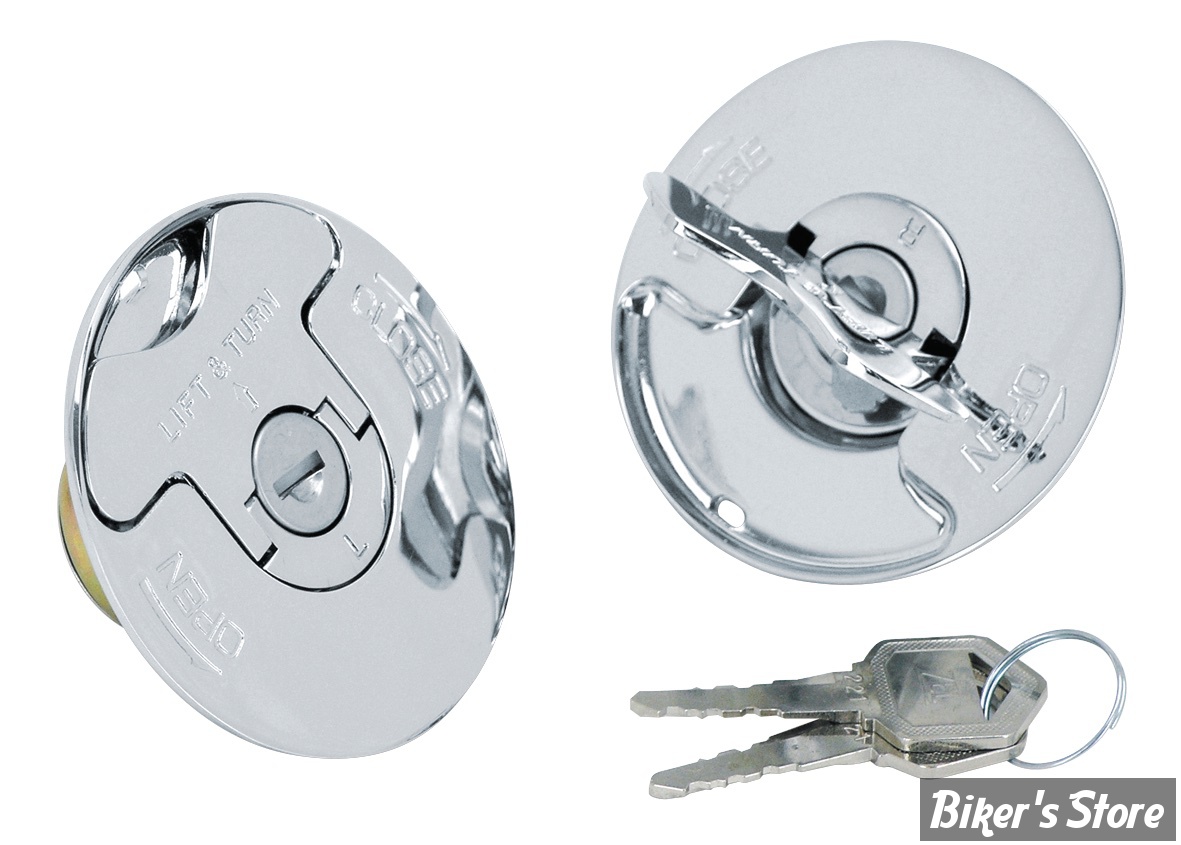 Bouchon de remplacement à fermeture quart de tour. Disponibles en jeux avec un bouchon ventilé l'autre non ou à l'unité en ventilé. Pour réservoirs équipés de ces bouchons en simple ou double bouchons. Les bouchons ont un diamètre extérieur de 73 mm pour les réservoirs d'essence avec un évidement de 61 mm et une ouverture de remplissage de 34 mm.