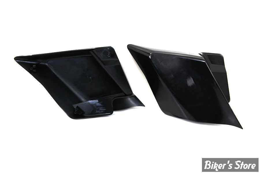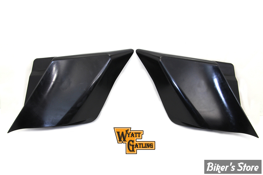Wyatt Gatling contoured side cover set is made of fiberglass reinforced plastic and features a clean flowing contoured look that flows into the saddlebags.