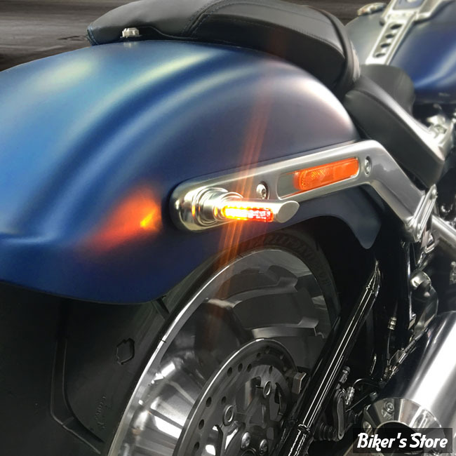 Triple Fonctions POSITION / CLIGNOTANTS et STOP Heinz Bikes, homologué ECE - Pour HD à partir de 1993 ayant les clignotants arrière sur les sabres (sauf Touring, Softail FLST et HD avec clignotants d'origine triple fonctions) La Paire
