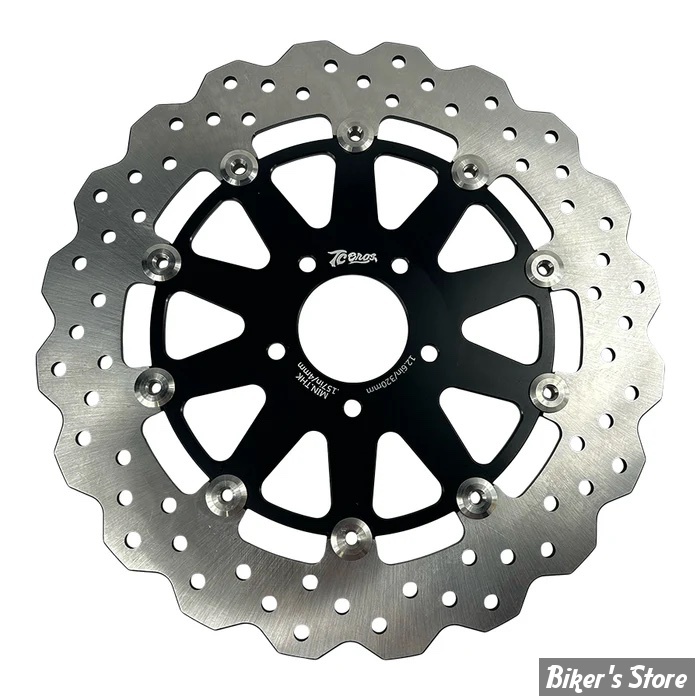 Harley Davidson® a considérablement amélioré la puissance de freinage des modèles CVO 2023 en utilisant les plus grands rotors de 12,6" (320 mm) de diamètre que l'on trouve sur les modèles Pan America par opposition aux rotors de 11,8" (300 mm) trouvés sur la plupart des autres vélos HD. Ils ont étendu ce changement de diamètre à encore plus (pas tous) les modèles Touring en 2024. Malgré cette amélioration, vous pouvez encore améliorer les performances et le style de votre Harley Bagger ou Pan Am (roues à rayons métalliques uniquement) avec ces TC Bros. Rotors Profile™. Conçus pour un refroidissement accru et un poids plus léger, ces rotors sont fabriqués avec précision à l'aide de matériaux de qualité supérieure.