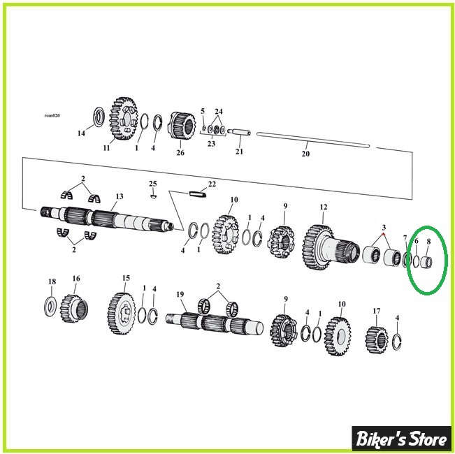 Cuvette de roulement, pour support arbre principal, pour Big Twins de 5 vitesses de 1985 à 2006 (sauf Dyna 2006), diamètre intérieur cylindrique, Ø int. x Ø ext.: 24.94 x 32.15 mm, grosseur: 25.9 mm, remplace OEM 34091-85A, USA, poids brut: 70 g. La Pièce