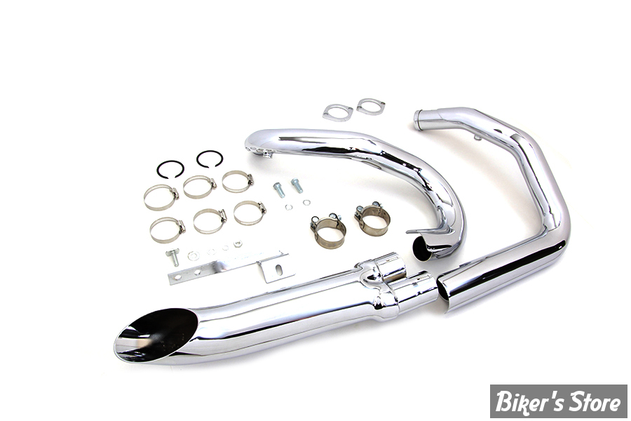 L'ensemble d'en-têtes d'échappement Chrome Wyatt Gatling 2 en 1 est une conception d'une seule pièce avec des silencieux de sortie.