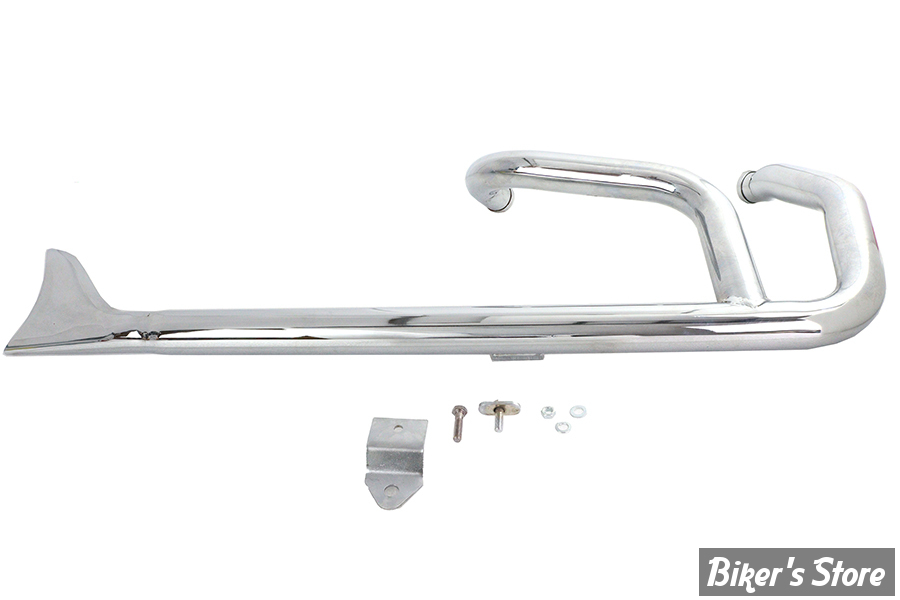 Le tuyau d'échappement Wyatt Gatling Sportster 2:1 fishtail est doté d'une finition chromée. Système d'échappement à queue de poisson 2:1 pour ce look classique sur les modèles Sportster 1985-2004 sans commandes avant.