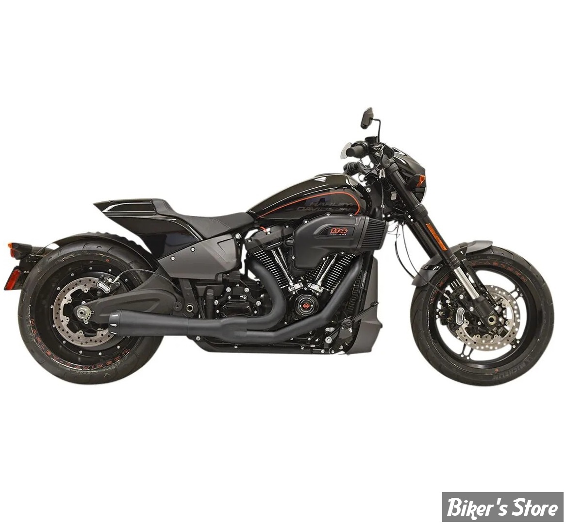 ECHAPPEMENT - BASSANI - SOFTAIL FLFB/FXBR/FXDR 18UP - 2-into-1 Road Rage Exhaust System - MODÈLE COURT 15" 1/2 - NOIR - 1S94RB
