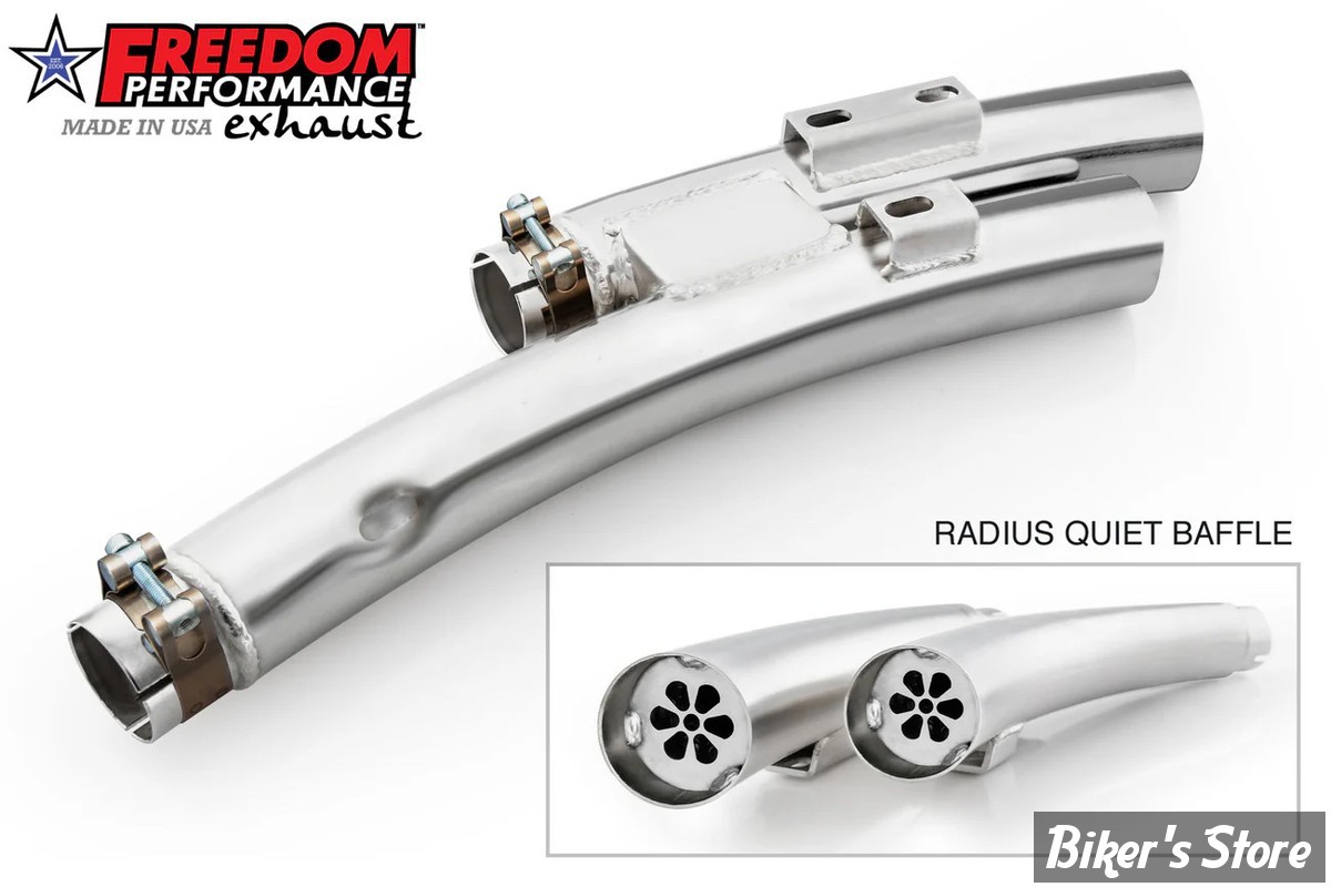 Freedom Performance baffles used inside a bike's exhaust to reduce the sound from the exhaust outlet. Control your motorcycle's performance and sound with Freedom Performance exhaust baffles. An acoustically tuned metallic chamber. Freedom Performance exhaust Quiet Baffles cancel out louder sounds emanating from the exhaust while still allowing softer sounds to pass through. Easily installed, and designed to fit 2.5" the Freedom Performance Radical Radius mufflers.-