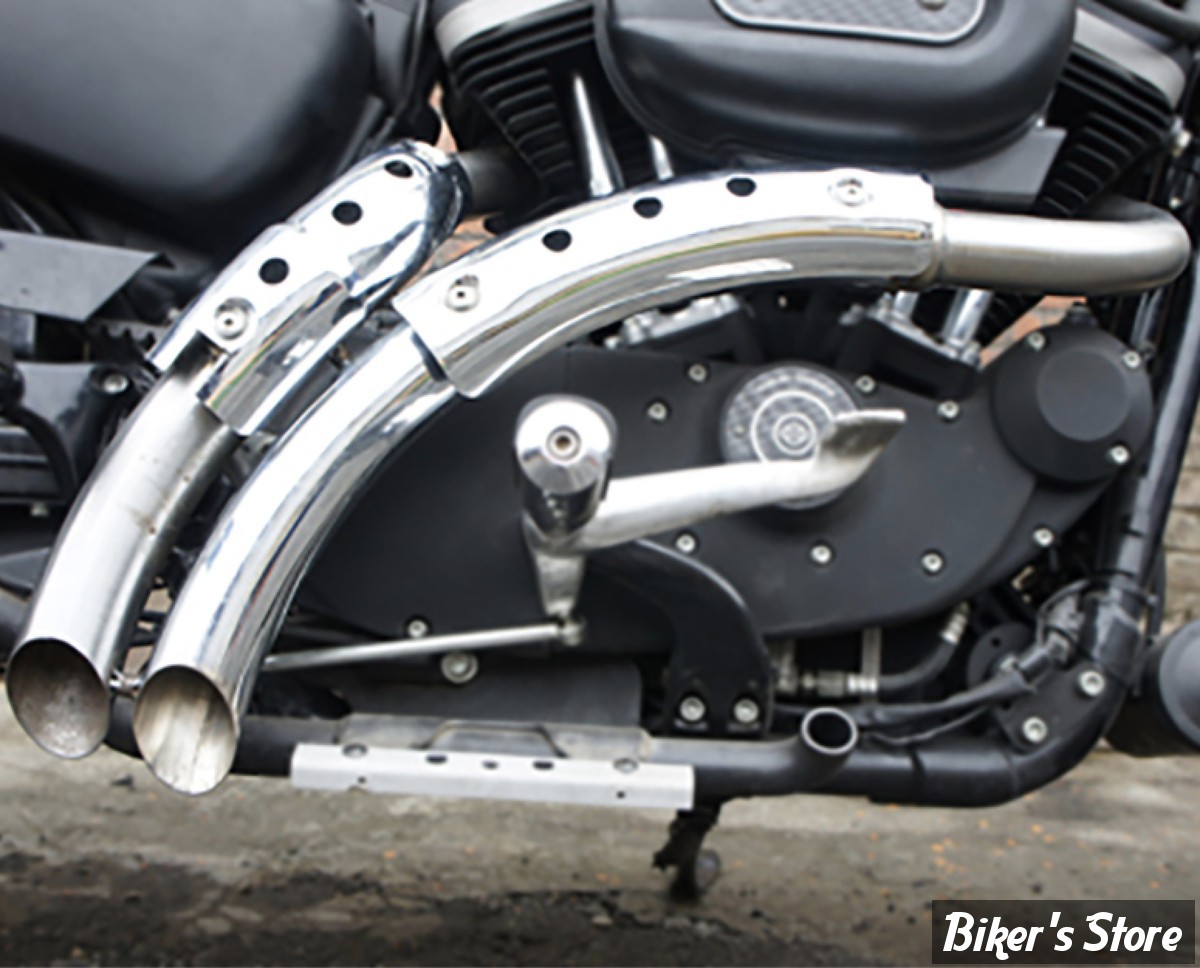 ECHAPPEMENT - Wyatt Gatling 1"3/4 - SPORTSTER 04/13 - Black Drag Pipe Set With Heat Shield - 30-1285 - CHROME