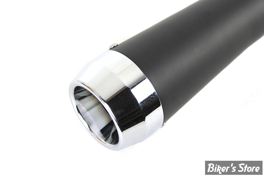 Les tubes d'en-tête ultima chromés de 1-3/4" sont dotés d'un mégaphone conique de 4" avec des embouts de billette chromés et un ensemble de boucliers thermiques ajustés.
