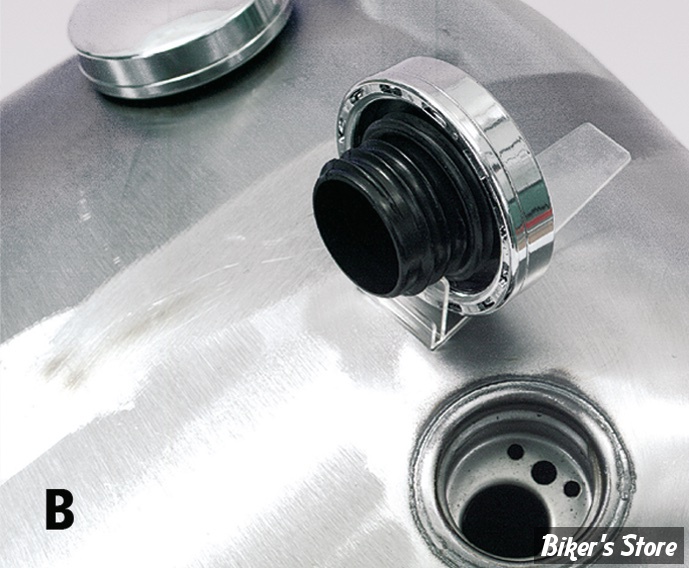 Les réservoirs sont livrés non peints et non apprêtés. Avant la peinture et le montage final, nous vous conseillons : Les réservoirs sont généralement étanches, qu’importe qu’ils soient custom ou OEM de rechange. Les problèmes surviennent en général après le montage. Raison pour laquelle il faut D’ABORD procéder à un test pression et faire un test de montage AVANT la peinture. De plus, il est impératif de traiter l'intérieur du réservoir par un produit spécial, à commander séparément : CC3991004.