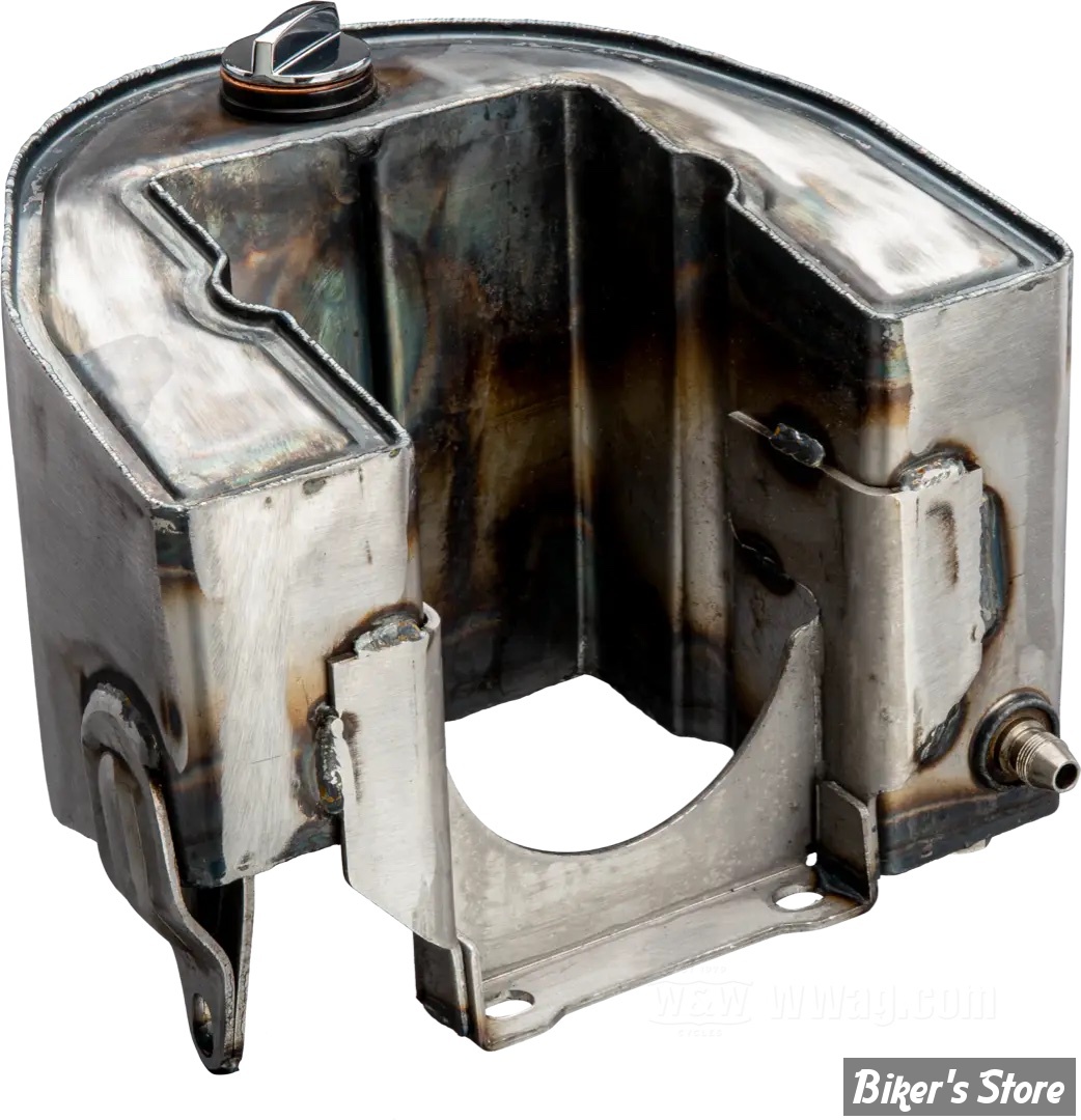Reproduction fidèle du réservoir d’huile dit “Horseshoe” pour les modèles Harley-Davidson 1000 cm³ et 1200 cm³ à cadre rigide ou oscillant, produits entre 1940 et 1964, c’est-à-dire pour les moteurs Knucklehead et Panhead. Son nom provient de sa forme caractéristique en fer à cheval, adaptée aux tubes du cadre. Comme les originaux historiques, ces reproductions sont dotées de flancs emboutis et de soudures précises. Idéal pour les restaurations et transformations dans un style authentique.