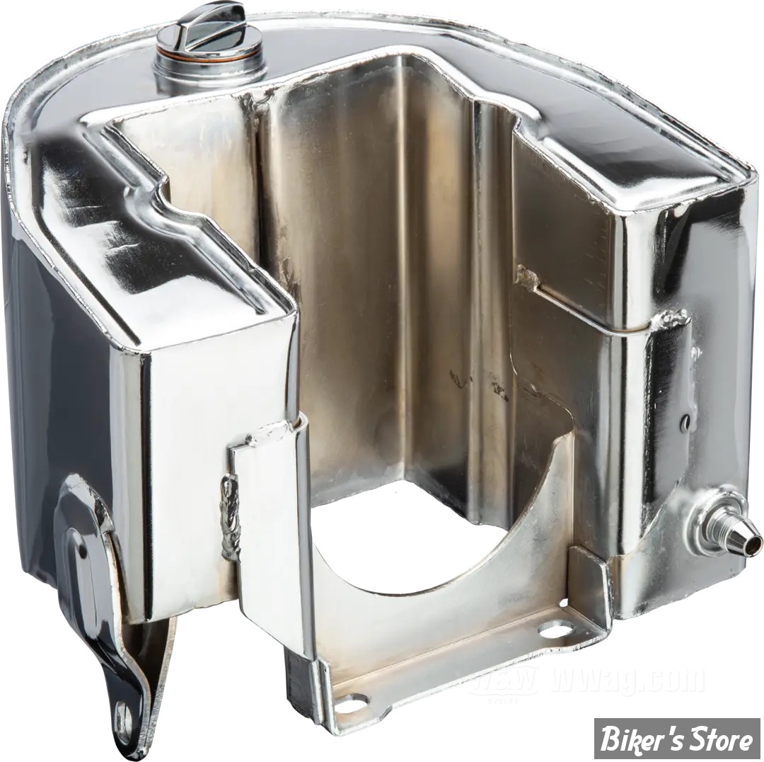 Reproduction fidèle du réservoir d’huile dit “Horseshoe” pour les modèles Harley-Davidson 1000 cm³ et 1200 cm³ à cadre rigide ou oscillant, produits entre 1940 et 1964, c’est-à-dire pour les moteurs Knucklehead et Panhead. Son nom provient de sa forme caractéristique en fer à cheval, adaptée aux tubes du cadre. Comme les originaux historiques, ces reproductions sont dotées de flancs emboutis et de soudures précises. Idéal pour les restaurations et transformations dans un style authentique.
