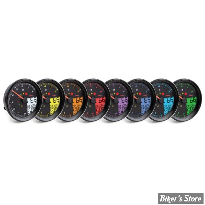 Black face, black bezel. Replacement for the later 4.5 (11.43cm) diameter tank mounted H-D speedometers. Connects plug & play to the existing wiring and is fully compatible with the bike's CAN-bus system. Offers speedometer (kmh/mph), tachometer, odometer, two trip meters, rev limit setting, shift light, multiple color backlights, gear indicator, engine temperature, battery voltage, fuel level indicator, average fuel consumption and more.