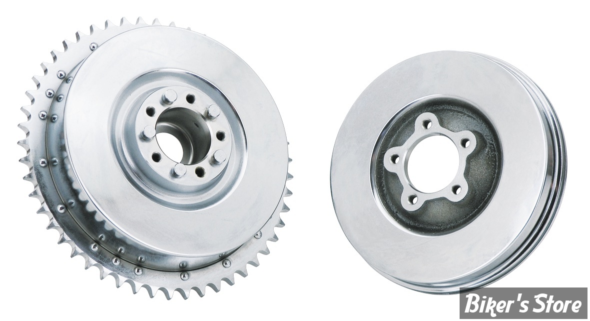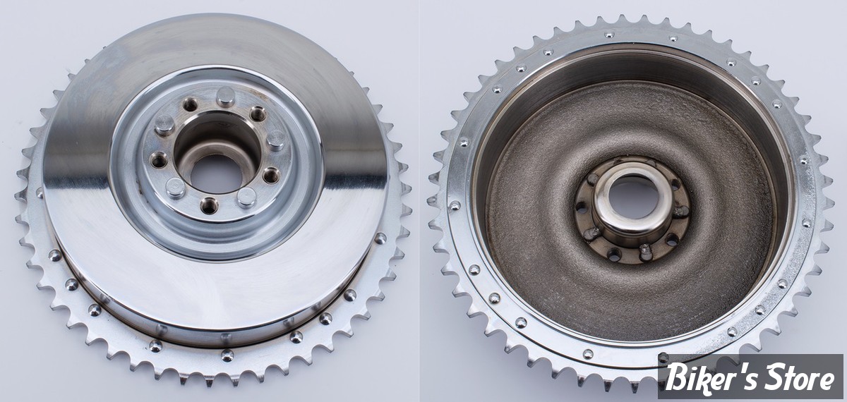 Les tambours arrières sont assemblés avec la couronne. Ils sont rectifiés et usinés après le chromage. Mieux ou excède les spécifications OEM. Pour chaîne de la série 530.