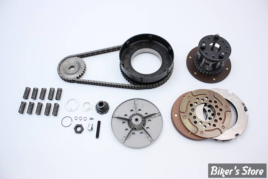 Primary chain drive system is 100 link and includes clutch drum basket, steel and fiber clutch plates and pressure plate assembly.