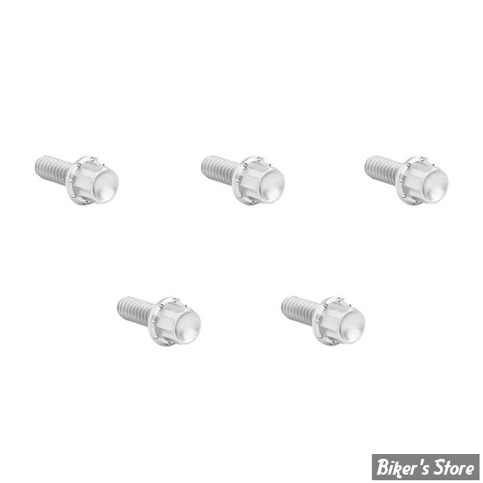 Ces kits de vis de cache-culbuteurs à 12 pans sont usinés CNC en titane. Chaque boulon en titane à 12 pans est usiné CNC et présente un trou d'allègement sur la bride. Ils sont plus légers que les pièces d'origine et sont en acier inoxydable (les kits pour moteur M8 incluent les boulons du cache-culbuteurs et du couvercle d'allumage. Les kits pour Twin Cam n'incluent pas les boulons du couvercle d'allumage). Disponibles en finition polie, noire et dorée.