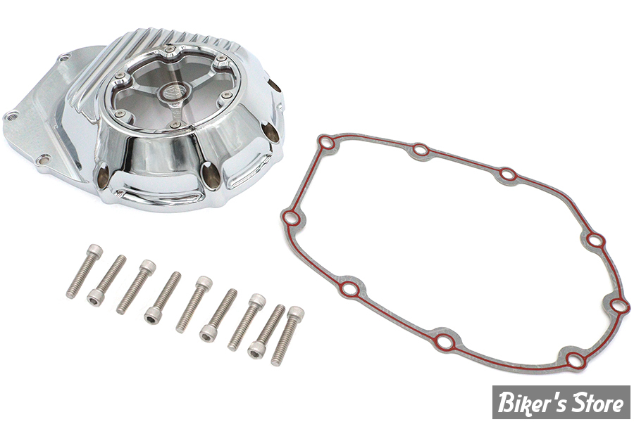 M8 cam cover kit with finned details. Includes bolts. Cam cover allows for the viewing of internal engine components.