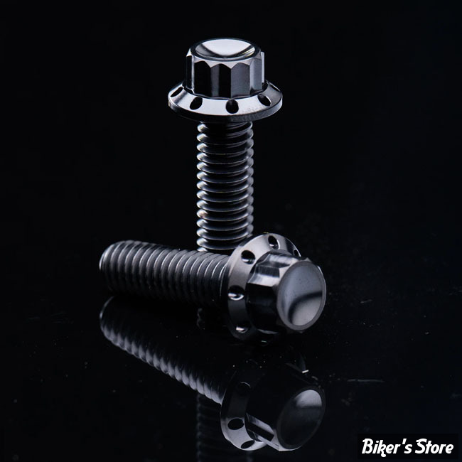 CNC machined from solid titanium. The 12-point bolt head is spot drilled with a lightning hole design on the bolt flange. Reduced weight compared to steel or stainless and sure to add a wow factor. Excellent corrosion resistant.