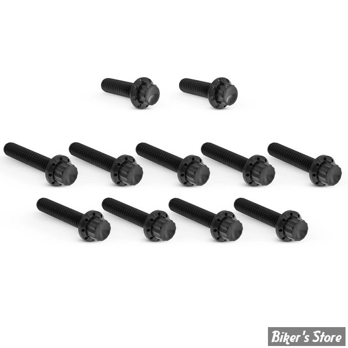 Ces kits de vis de cache-culbuteurs à 12 pans sont usinés CNC en titane. Chaque boulon en titane à 12 pans est usiné CNC et présente un trou d'allègement sur la bride. Ils sont plus légers que les pièces d'origine et sont en acier inoxydable (les kits pour moteur M8 incluent les boulons du cache-culbuteurs et du couvercle d'allumage. Les kits pour Twin Cam n'incluent pas les boulons du couvercle d'allumage). Disponibles en finition polie, noire et dorée.