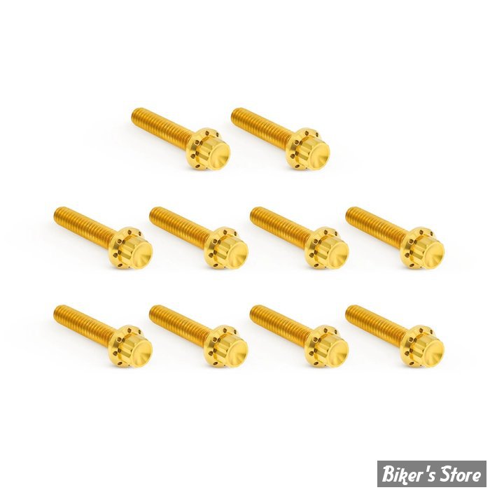 Ces kits de vis de cache-culbuteurs à 12 pans sont usinés CNC en titane. Chaque boulon en titane à 12 pans est usiné CNC et présente un trou d'allègement sur la bride. Ils sont plus légers que les pièces d'origine et sont en acier inoxydable (les kits pour moteur M8 incluent les boulons du cache-culbuteurs et du couvercle d'allumage. Les kits pour Twin Cam n'incluent pas les boulons du couvercle d'allumage). Disponibles en finition polie, noire et dorée.
