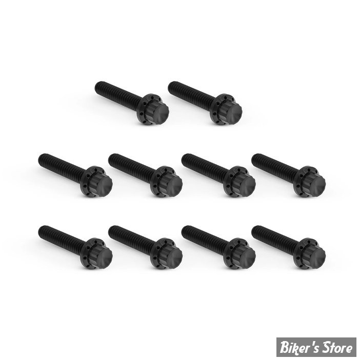 Ces kits de vis de cache-culbuteurs à 12 pans sont usinés CNC en titane. Chaque boulon en titane à 12 pans est usiné CNC et présente un trou d'allègement sur la bride. Ils sont plus légers que les pièces d'origine et sont en acier inoxydable (les kits pour moteur M8 incluent les boulons du cache-culbuteurs et du couvercle d'allumage. Les kits pour Twin Cam n'incluent pas les boulons du couvercle d'allumage). Disponibles en finition polie, noire et dorée.