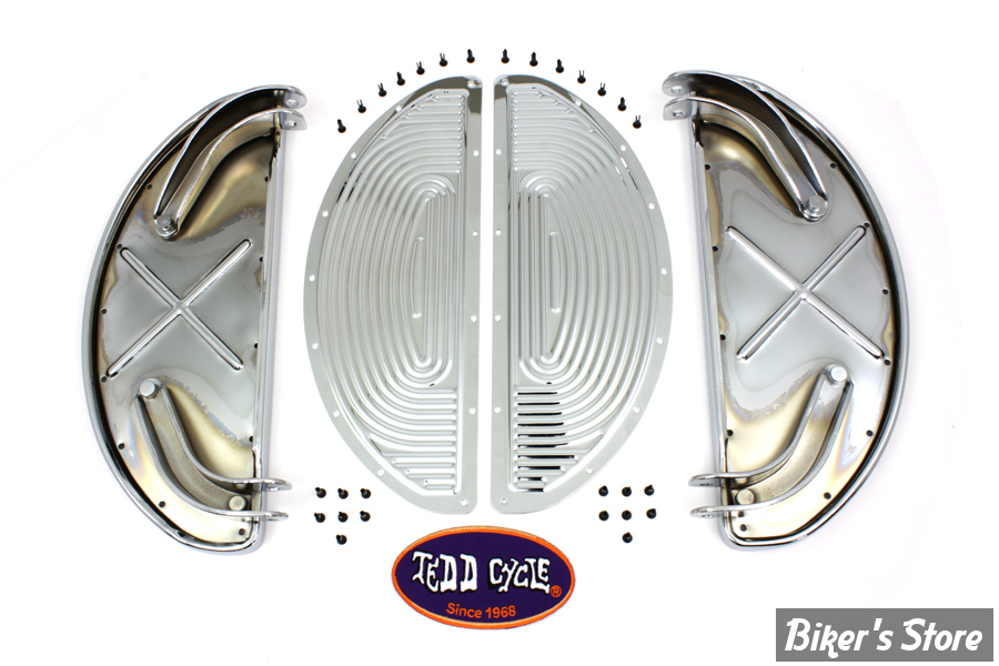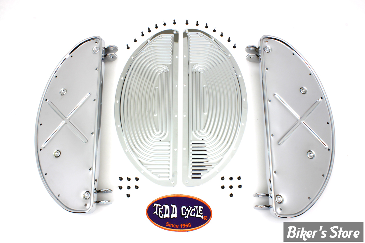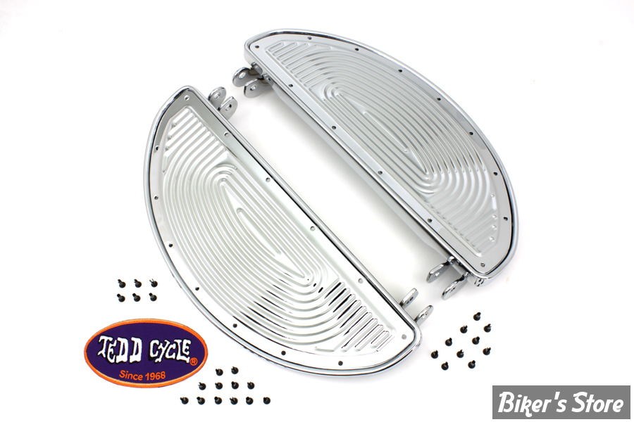 Pièces pour Custom > Harley-Davidson > REPOSES PIEDS > Plateformes AV 1936/1984 > ECLATE IE - PIECE N° 02 - KIT MARCHE PIEDS Half Moon Footboard Set - OEM 50603-40 - RIBBED - CHROME / CHROME