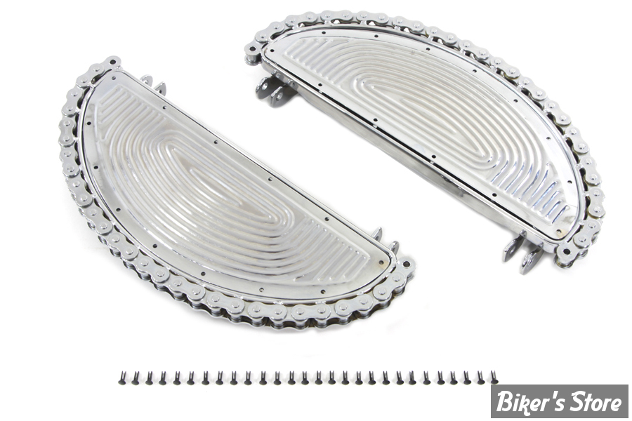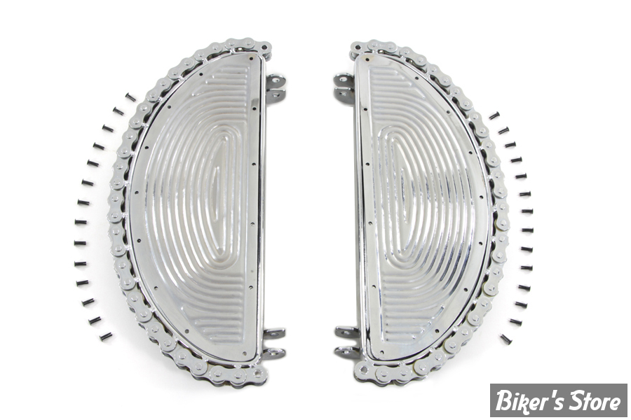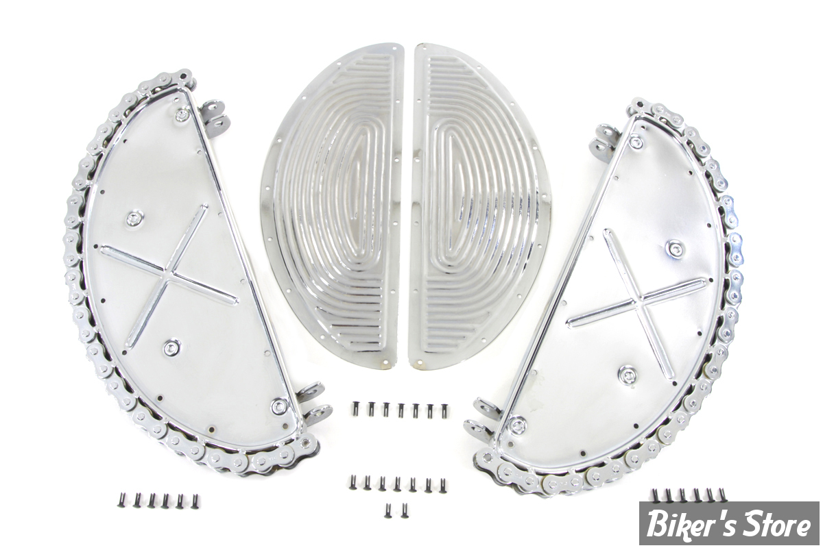 Pièces pour Custom > Harley-Davidson > REPOSES PIEDS > Plateformes AV 1936/1984 > ECLATE IE - PIECE N° 02 - KIT MARCHE PIEDS Half Moon Footboard Set - OEM 50603-40 - RIBBED - CHROME / CHROME CHAIN STYLE