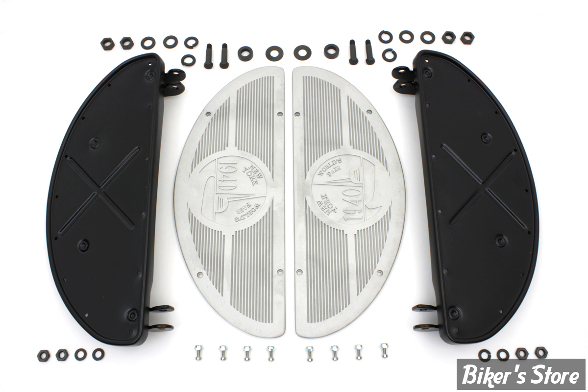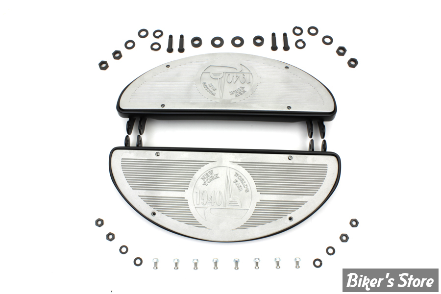World's Fair half moon footboard kit features black footboards with alloy World's fair inserts.