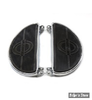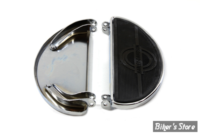 Set of two. This footboard set can also be used on 1966-1984 FL models. Includes rubber pads with logo, must be set in place with adhesive. Holes for rivets are pre-drilled in the boards, if rivets are so desired. Mounting bracket features 9-3/4" spacing.