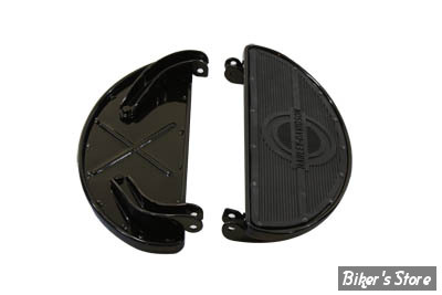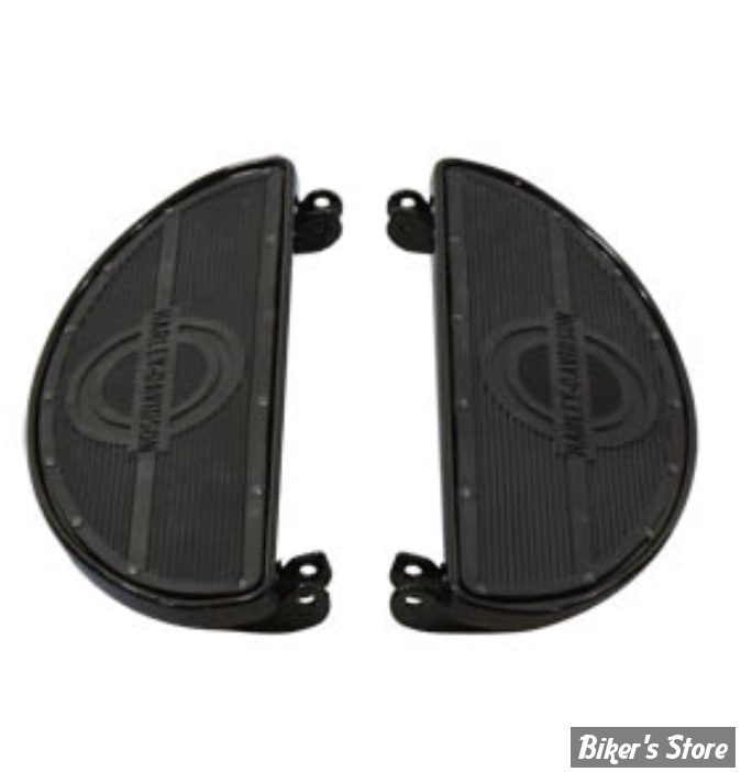 Replica footboard set with riveted rubber pad with logo will fit stock mounting brackets. Features a rolled edge, rivets as original and gloss black finish on boards.